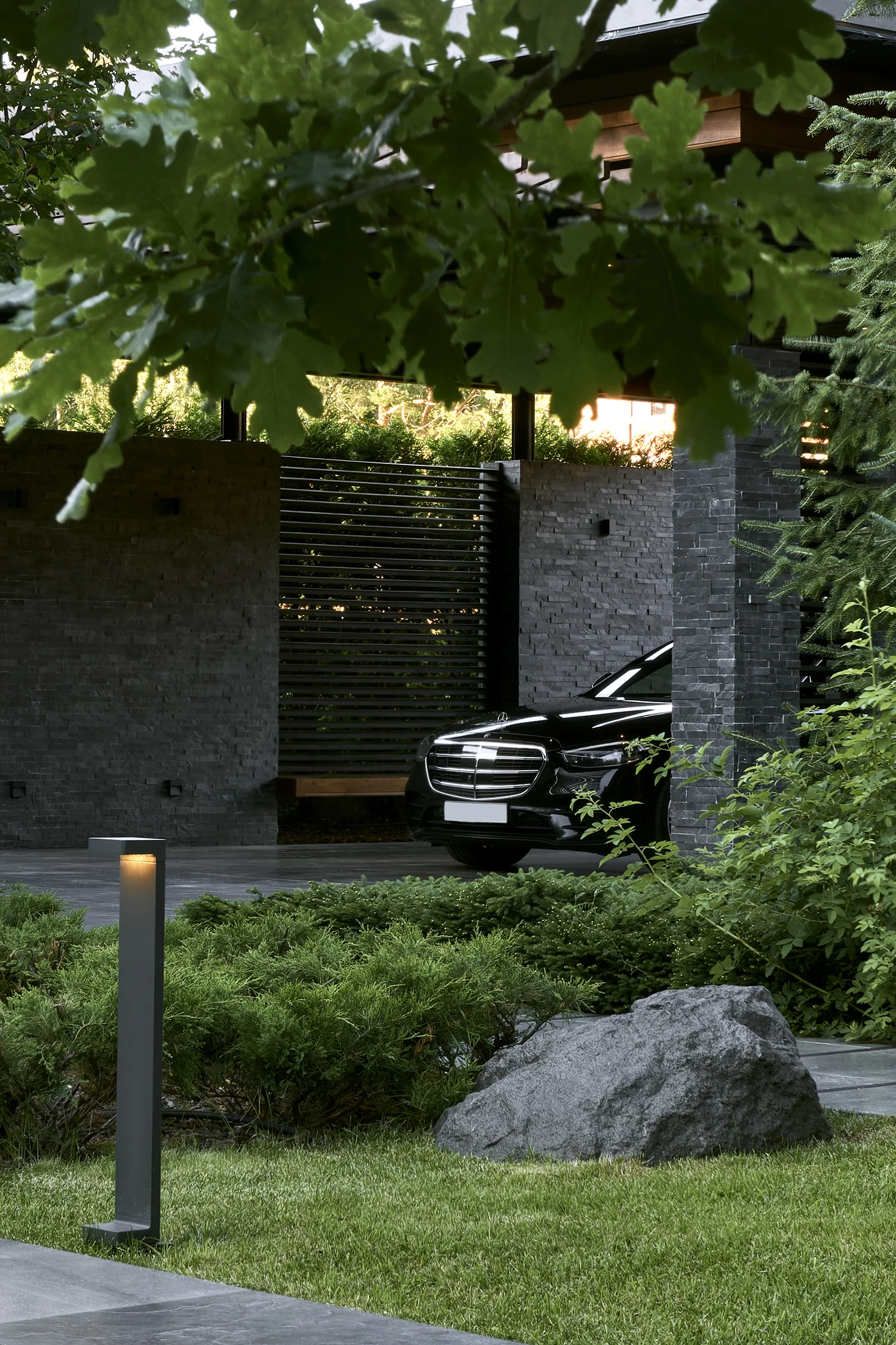 الحديقة لها أسلوب، وهي تعكس بدقة شخصية المالكين. منتبهون، يقدرون الراحة، شواء نهاية الأسبوع، الحصاد، الاسترخاء الهادئ على الشرفة وبجانب حمام السباحة. اتباعاً لتقاليدهم، خططنا لجميع المناطق بحيث تكون على مسافة قريبة للعائلة. ما نجحنا فيه حقاً كان مضاعفة الشعور بالتماسك والدعم العائلي. أشجار العفص بارتفاع أربعة أمتار وبلوط إنجليزي نادر ومنتشر هما المسؤولان عن ذلك.