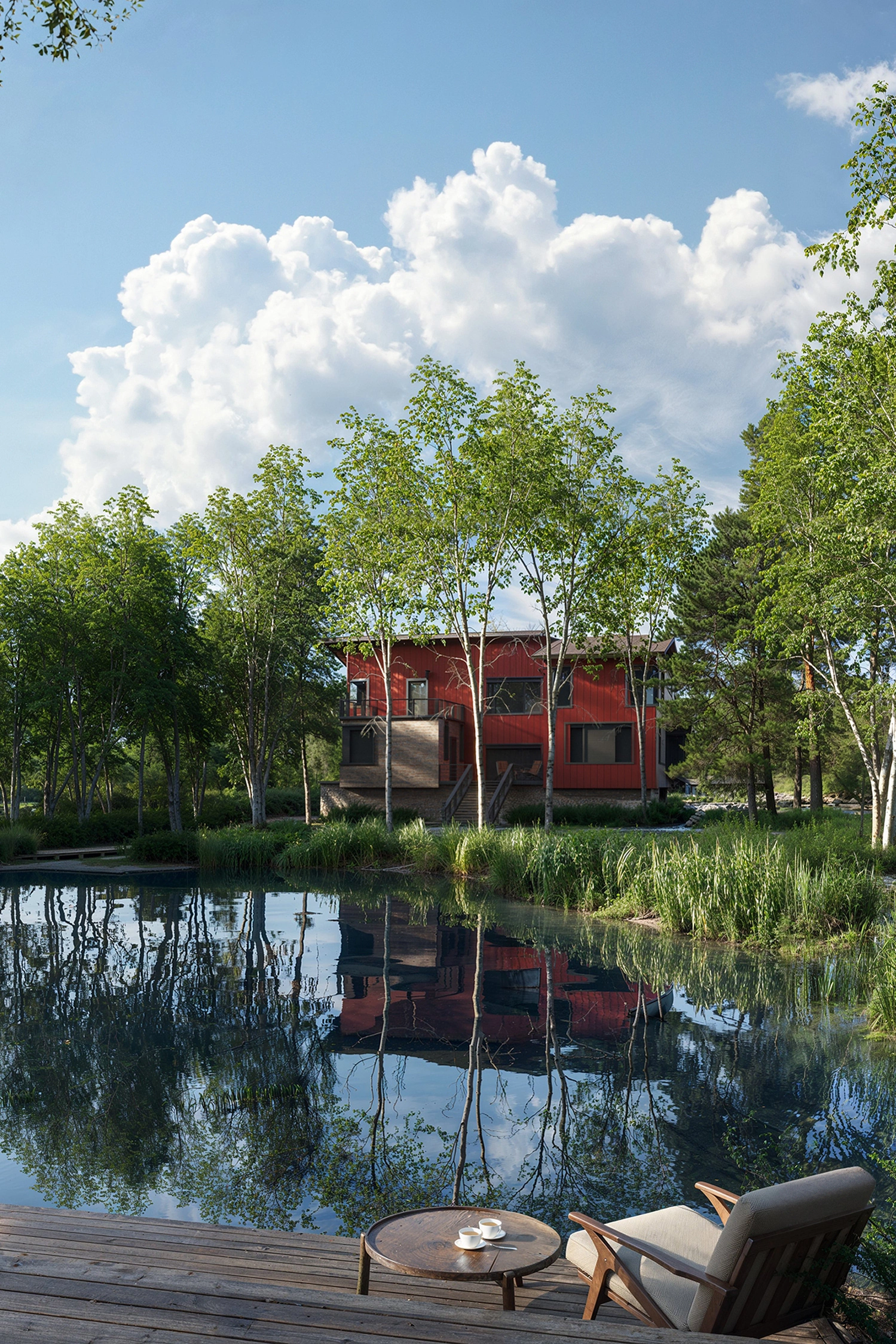 Die Inspiration für die Gestaltung des Gartens war ein Haus, das von einem britischen Architekturstudio aus Würfeln in hellen roten Blöcken entworfen wurde, die uns an den Suprematismus von Kasimir Malewitsch erinnerten. Wir haben beschlossen, dass alle Elemente des Gartens in einer Weise im Einklang stehen, als wären sie auf einem abstrakten Bild angeordnet. So entstanden die reinen architektonischen Formen des Projekts.