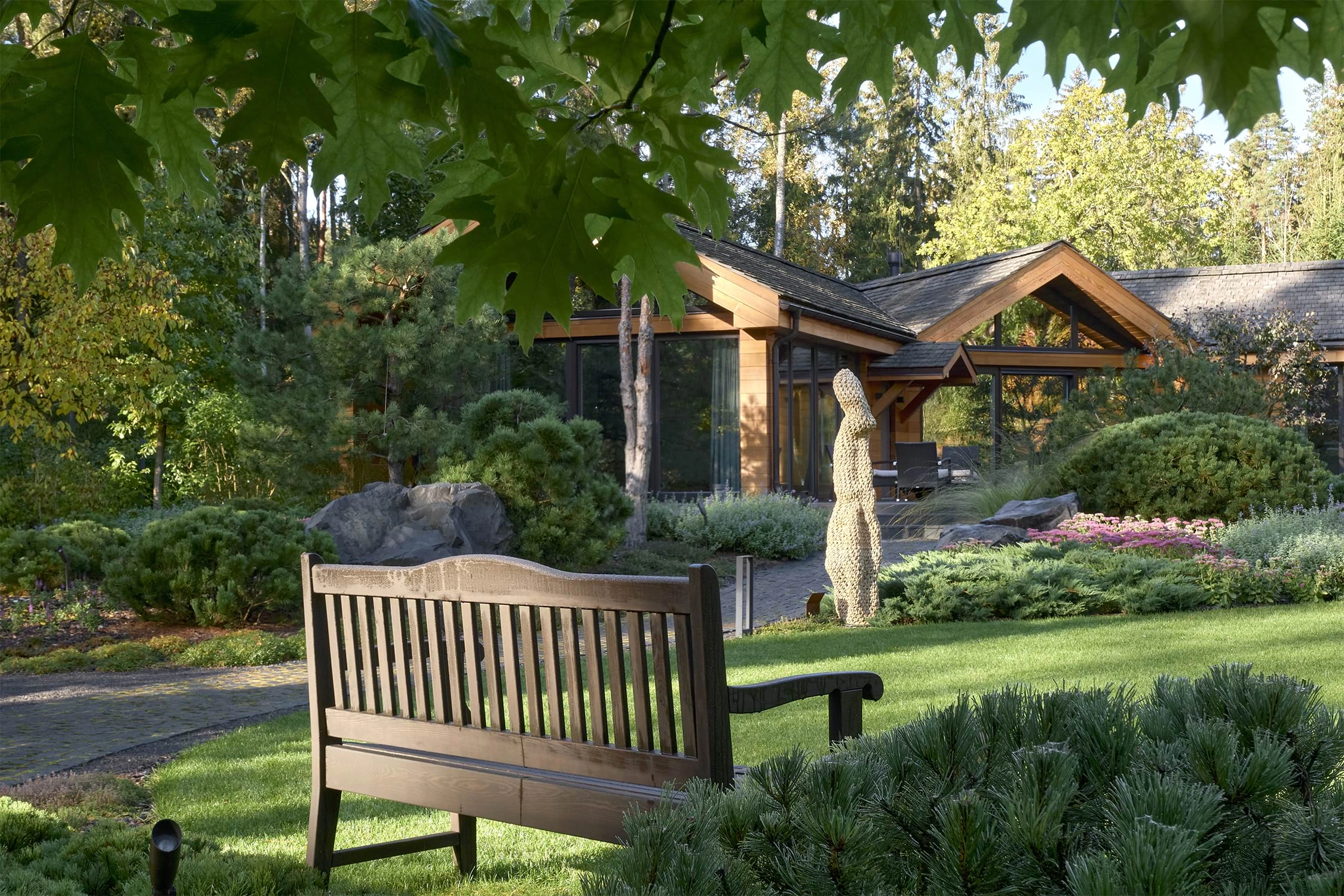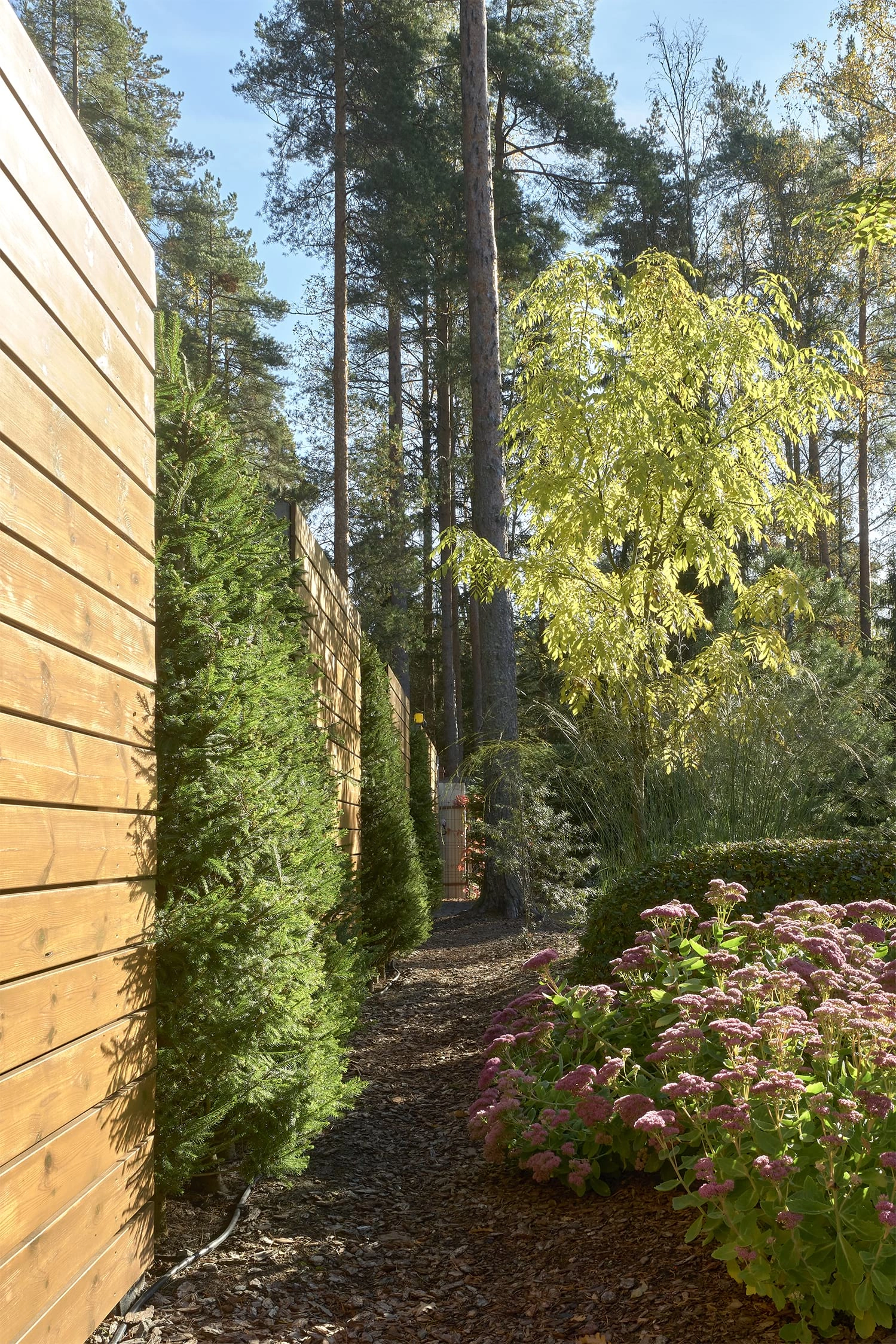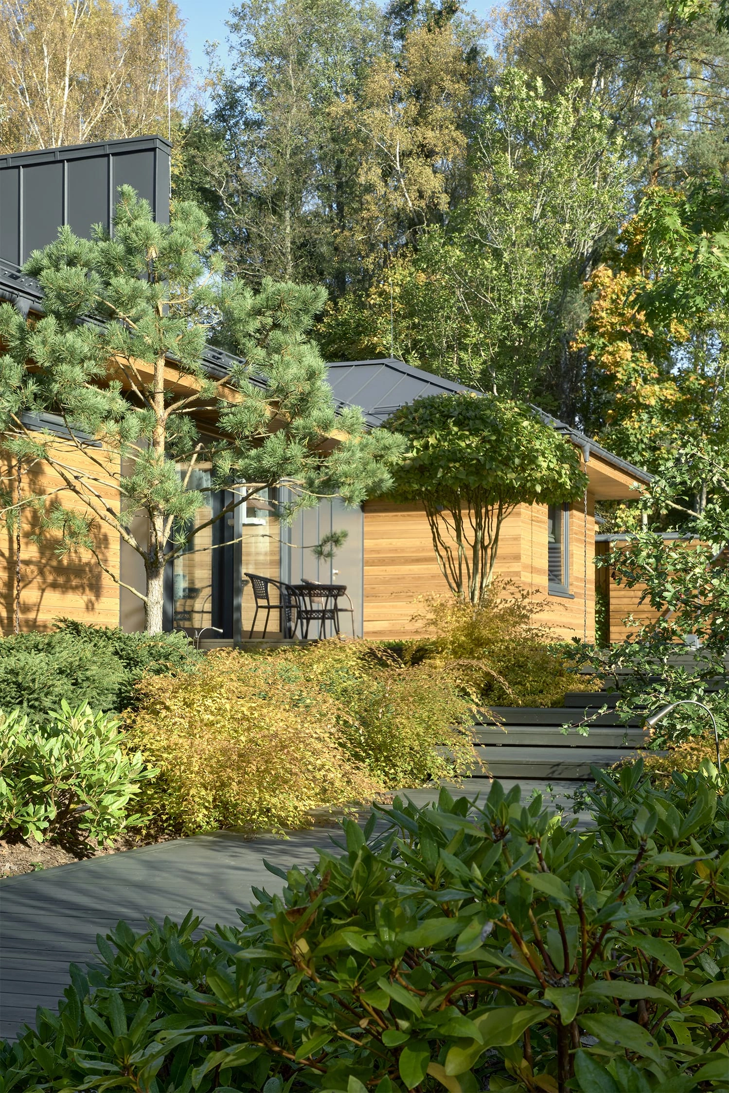 Der Garten war immer von größter Bedeutung, daher wurde während der Architekturplanungsphase beschlossen, die Gebäude in den Ecken zu platzieren. Das Zentrum blieb frei für die Schaffung eines klassischen skandinavischen Gartens, der so unterschiedliche Momente und Zustände bietet.