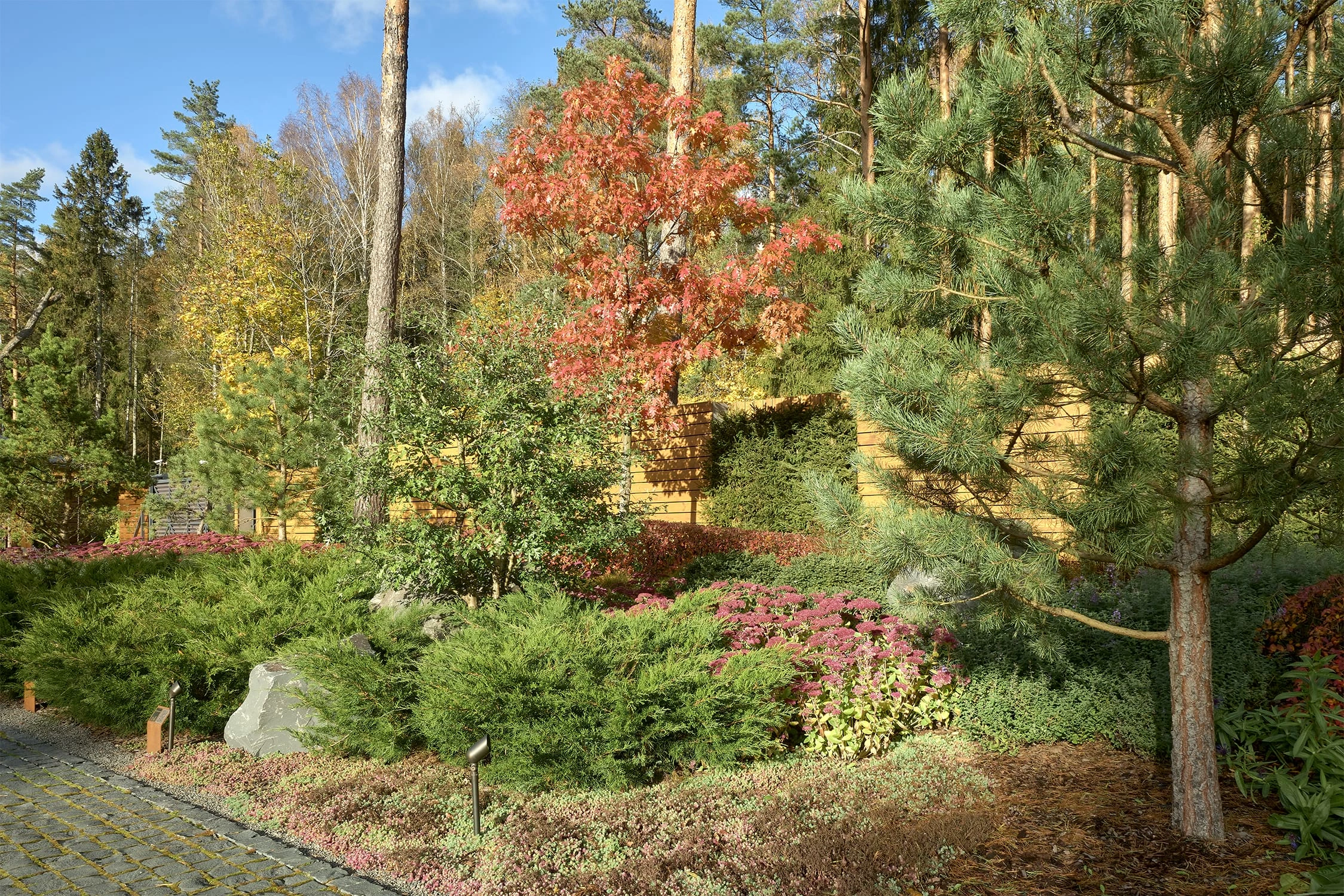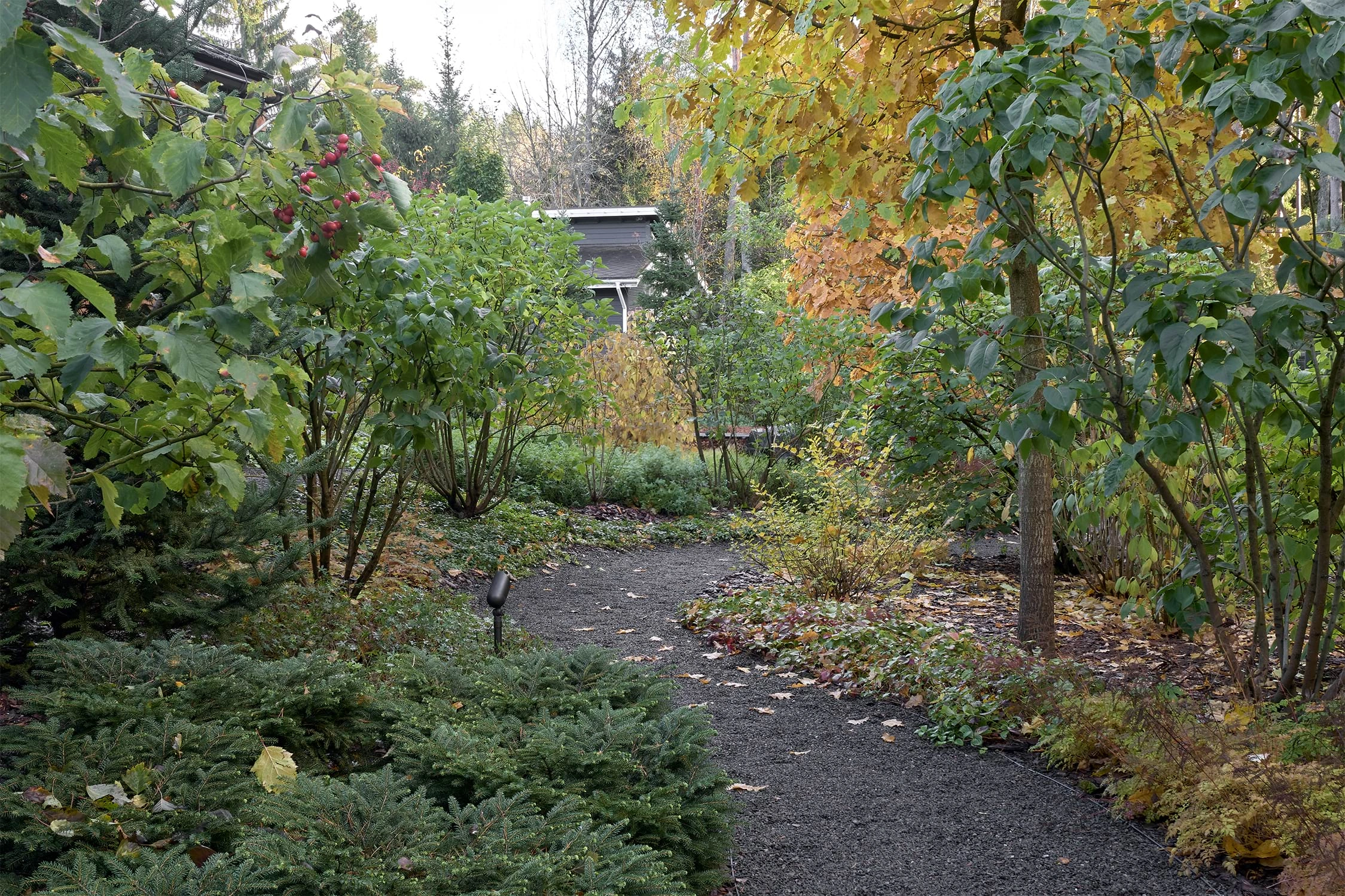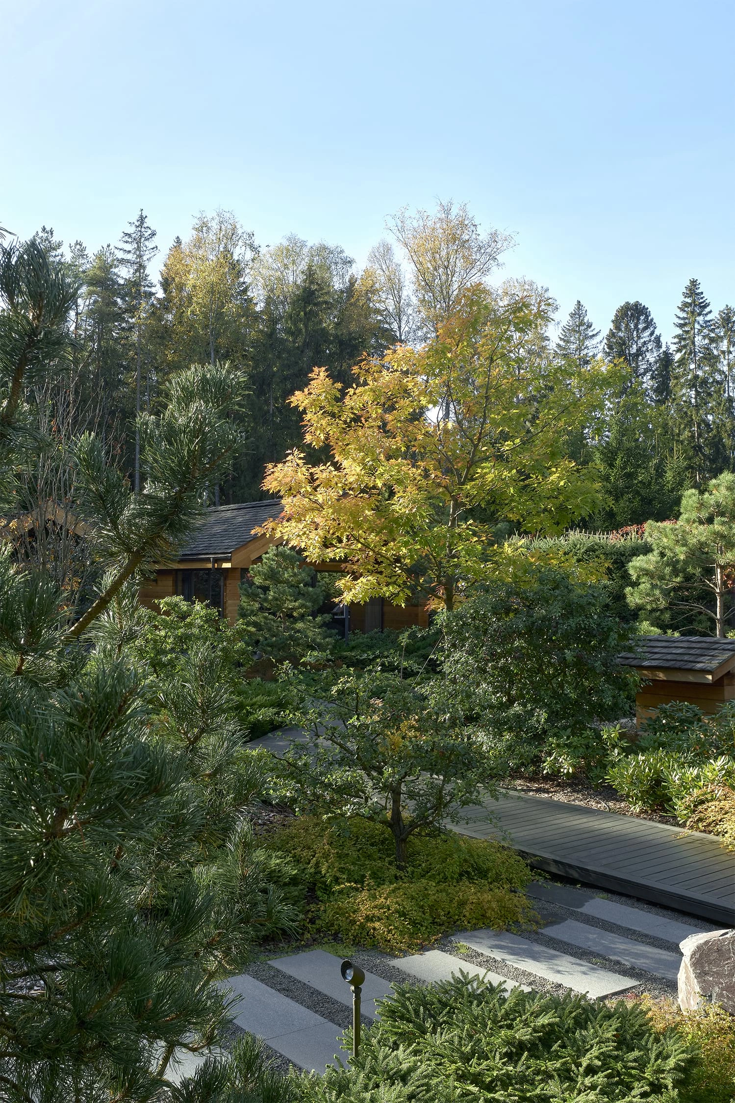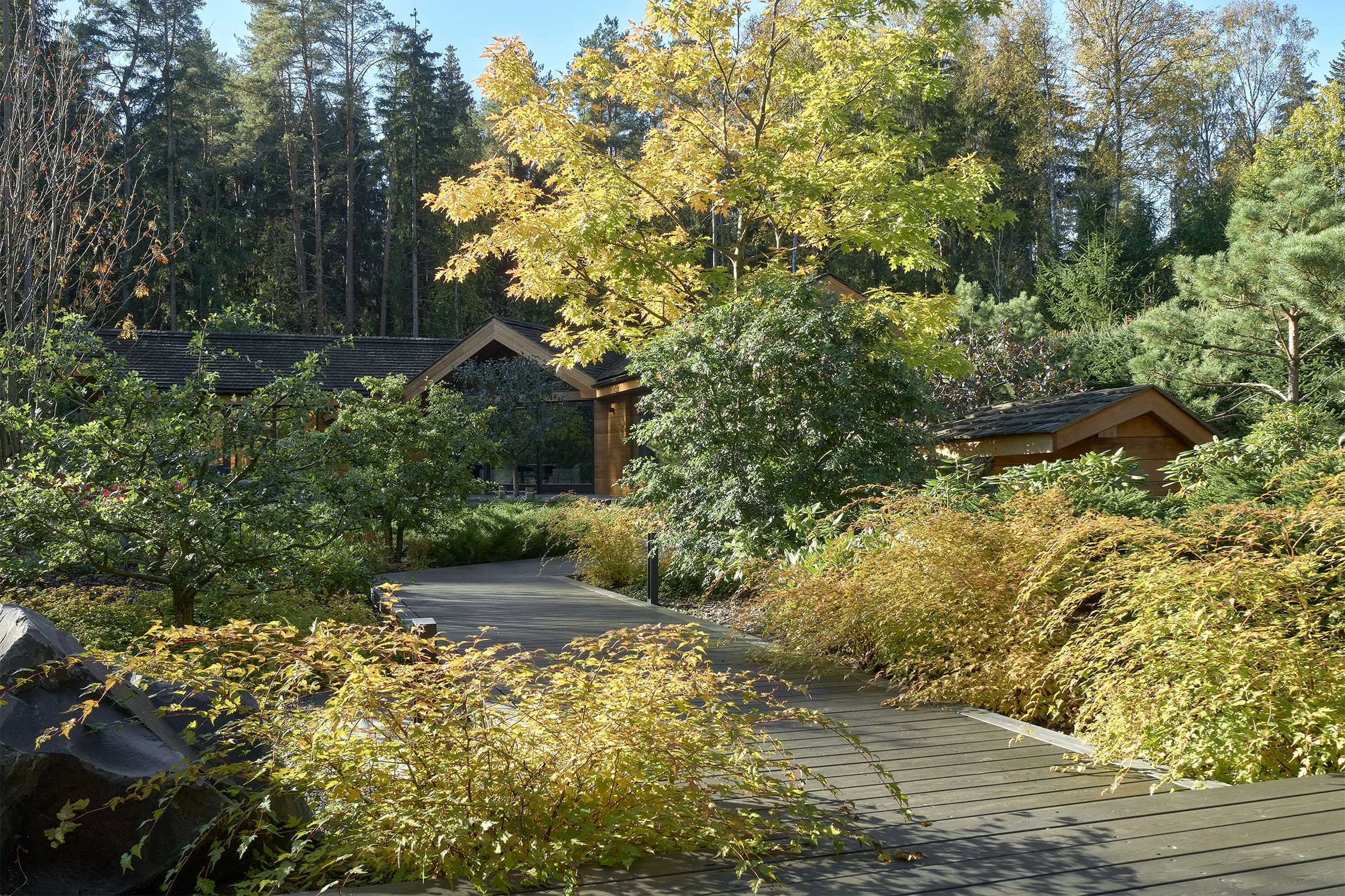 Diese Landschaft umfasst lokale Pflanzen und einzigartige Exoten. Sie wurden behutsam ausgewählt, um die Umgebung nicht zu gefährden. Zum Beispiel fanden wir eine geeignete Buche von einem Sammler, die in der nordwestlichen Region gewachsen war. Die koreanische Insel-Eberesche Dodong mit ihrem unglaublich leuchtend roten Laub wurde angepasst aus Schweden gebracht.