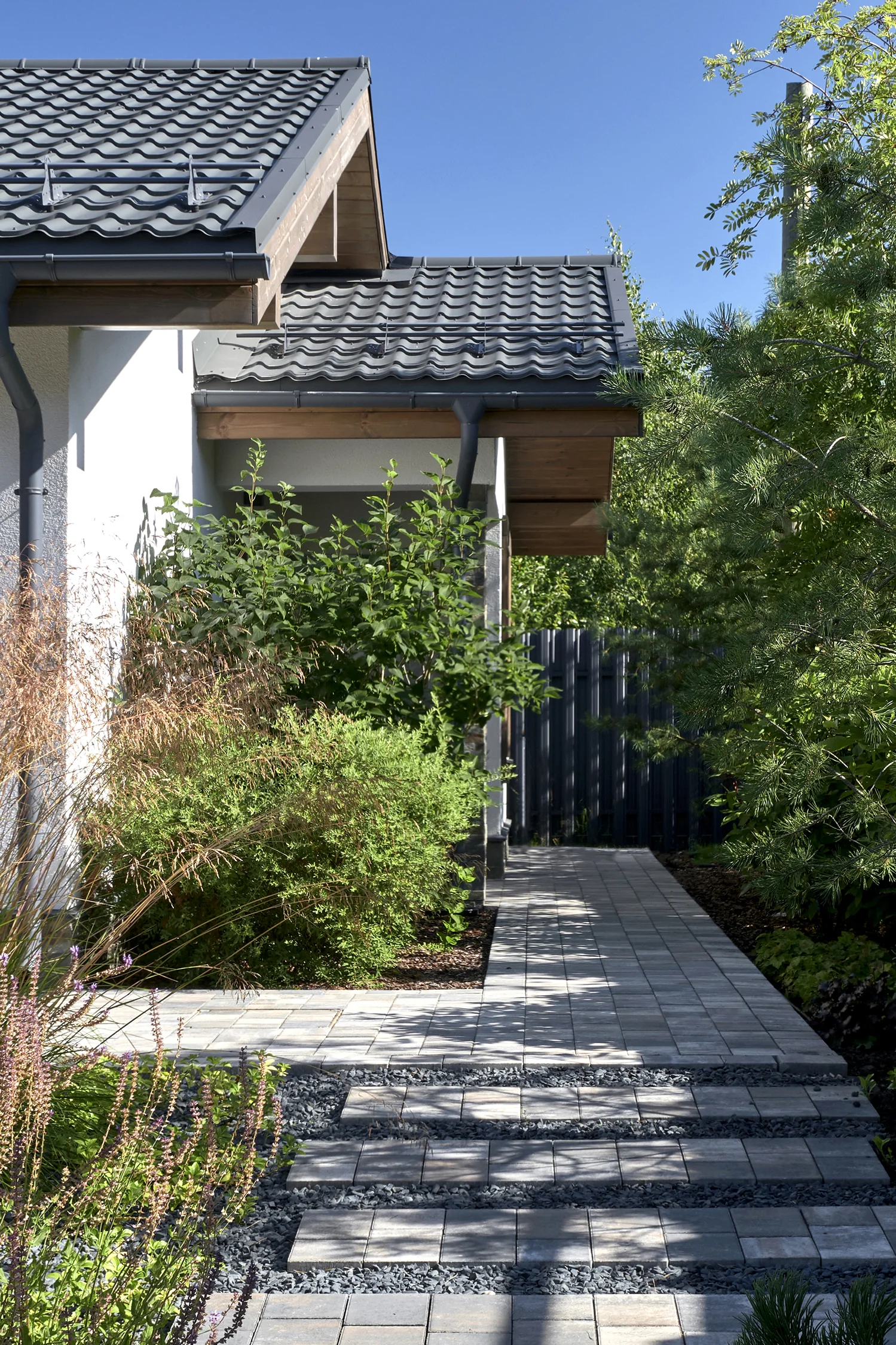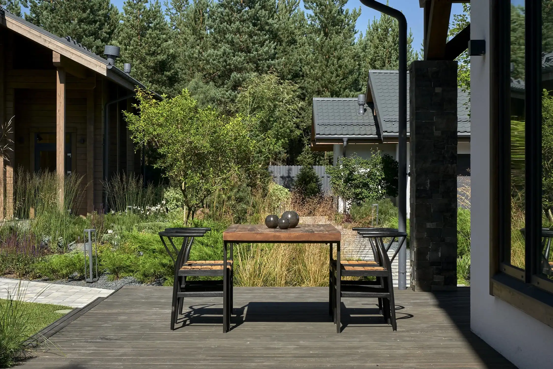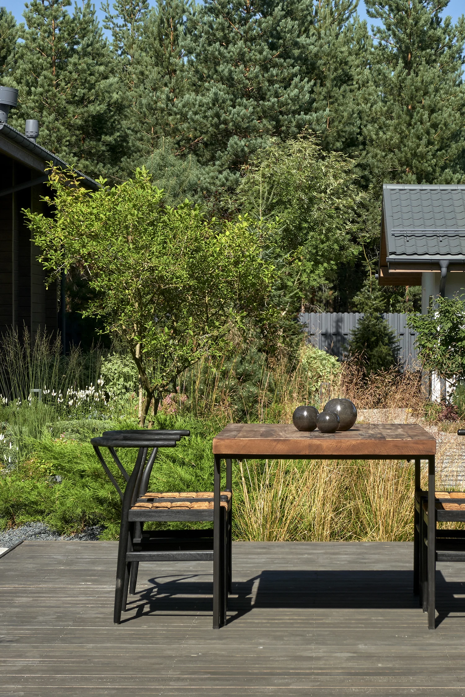 Die Engländer haben den Ausdruck «be overdressed» – übermäßig herausgeputzt sein, unangemessen für den Ort und die Situation. «Herausgeputzt» durch die wohlmeinenden Bemühungen der Besitzer werden viele Gärten. Wald ½ gehört definitiv nicht dazu. Das Grundstück ist ungewöhnlich – mit zwei Häusern und hohen Kiefern. Wir beschlossen, diesen Trend fortzusetzen und verbanden zwei Wälder zu einem.