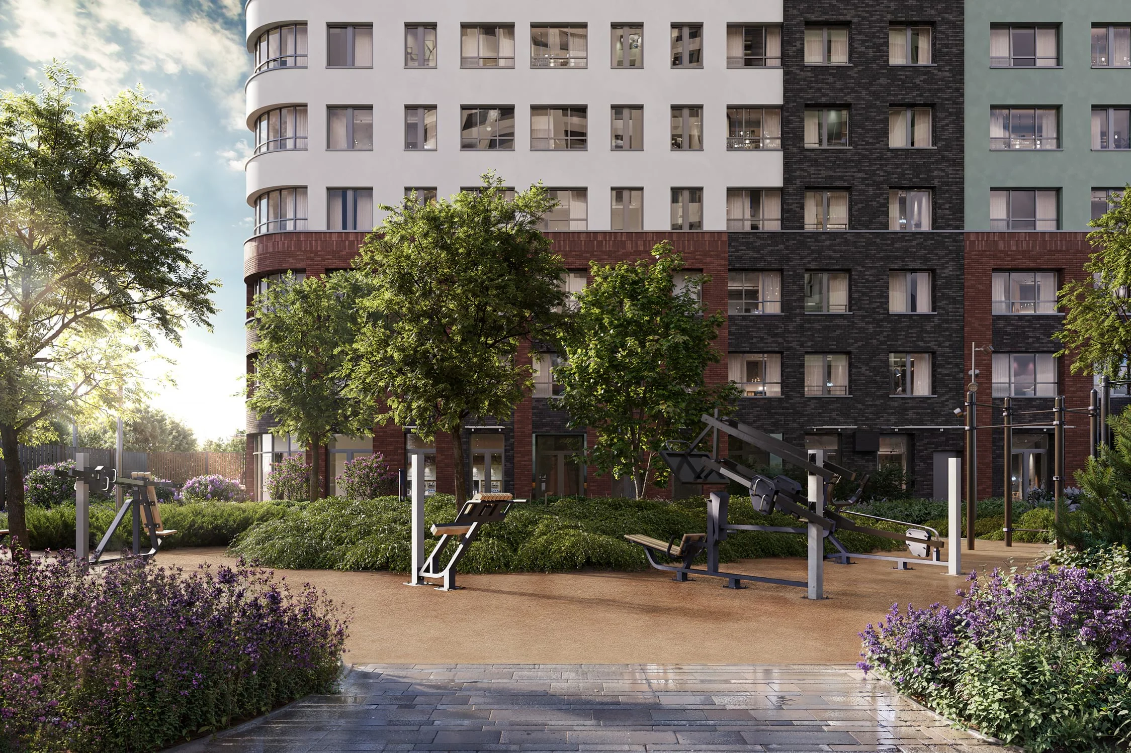 Die Firma “Afa” hat Szenenlösungen für Kinder- und Sportplätze entwickelt. Wir haben diese Gebiete durch Pflanzen und Sträucher in Bereiche des offenen Typs — öffentliche Erholungsräume und geschlossene Bereiche — unterteilt, in denen wir uns zum Lesen oder zum individuellen Training zurückziehen möchten, was für den modernen Bewohner besonders wertvoll ist.