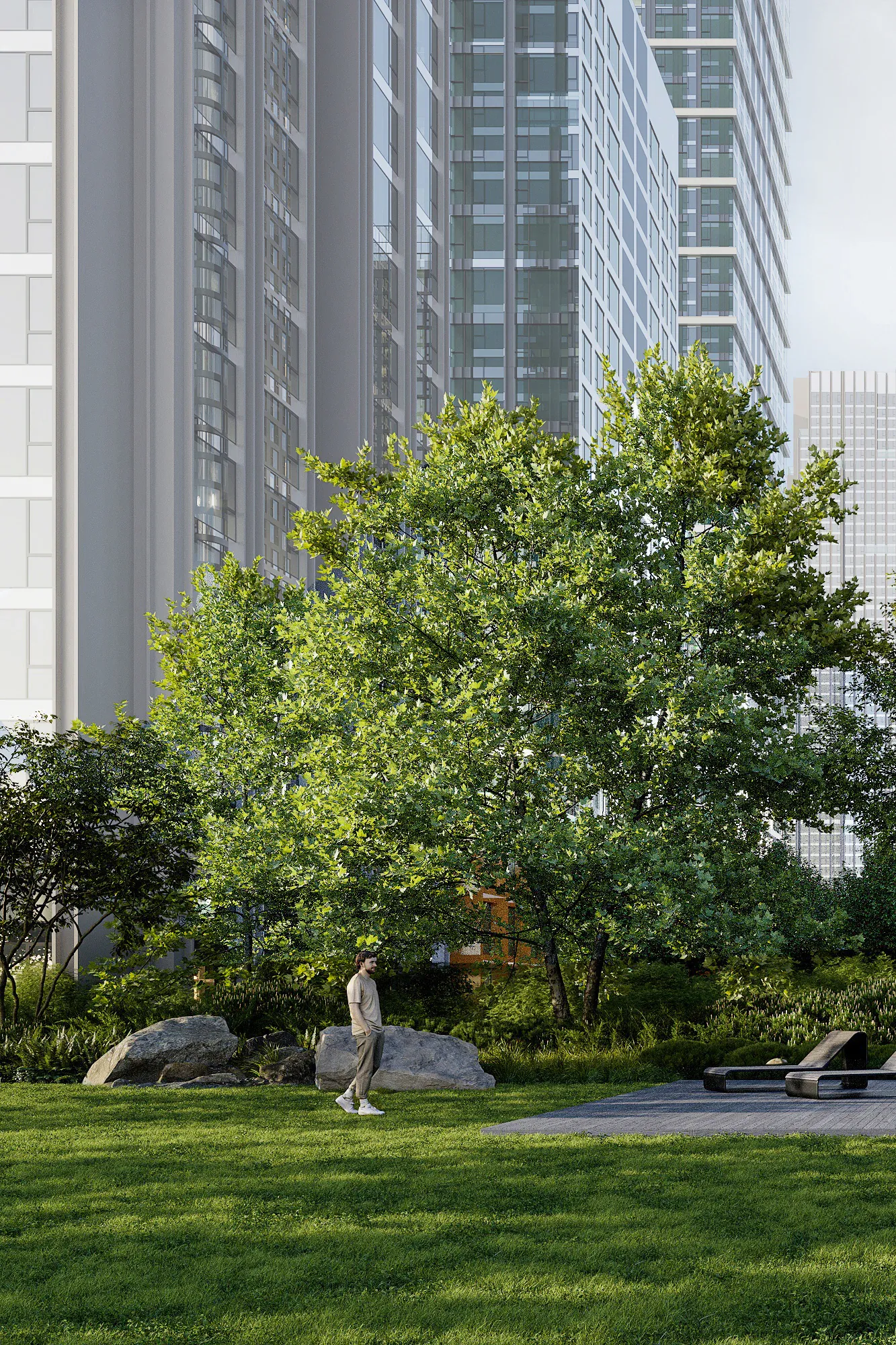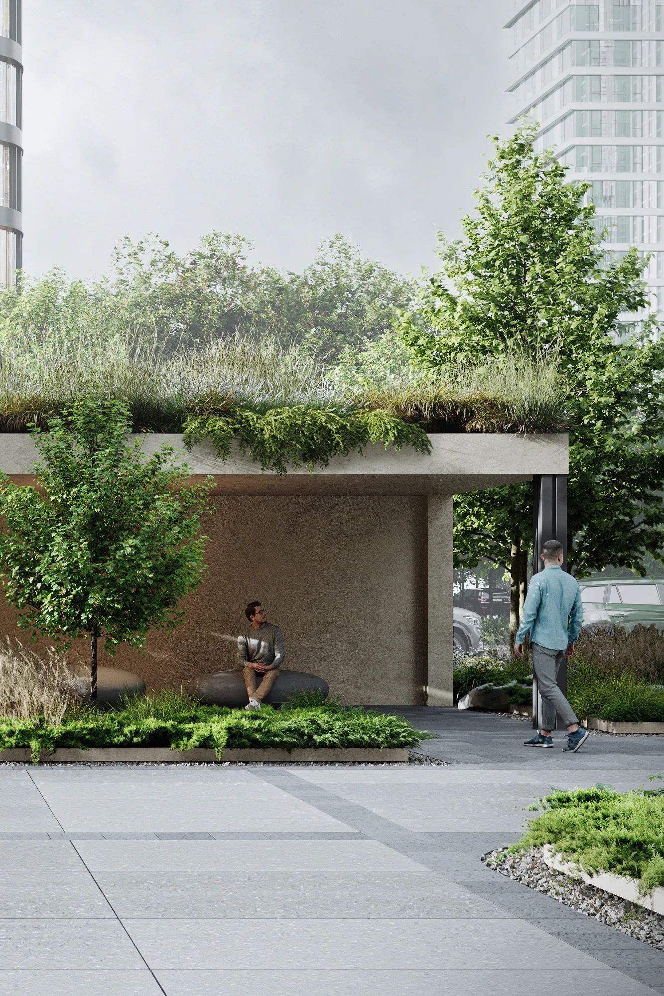 Сердце района — каскадный парк, объединяющий зоны отдыха, образования и развития. Здесь реализована система засаженных канав (биосвейлов) для сбора и очистки дождевой воды, а тематические рощи становятся площадкой для экологических экскурсий и знакомства с принципами устойчивого развития.