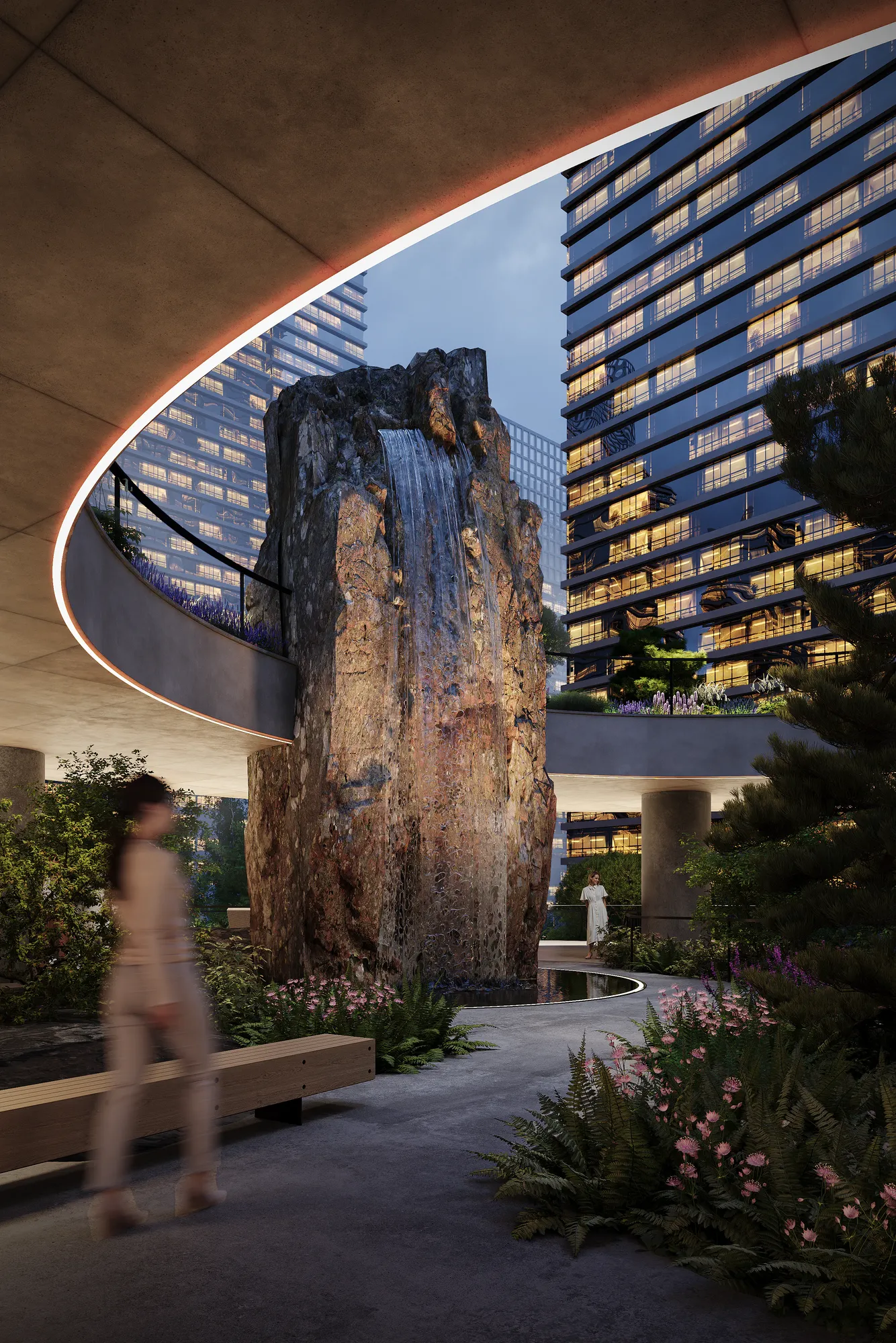 Все растения подобраны с учётом устойчивости к городской среде и минимальной потребности в уходе, поддерживая идею «сада вне времени» — живого, но самодостаточного.