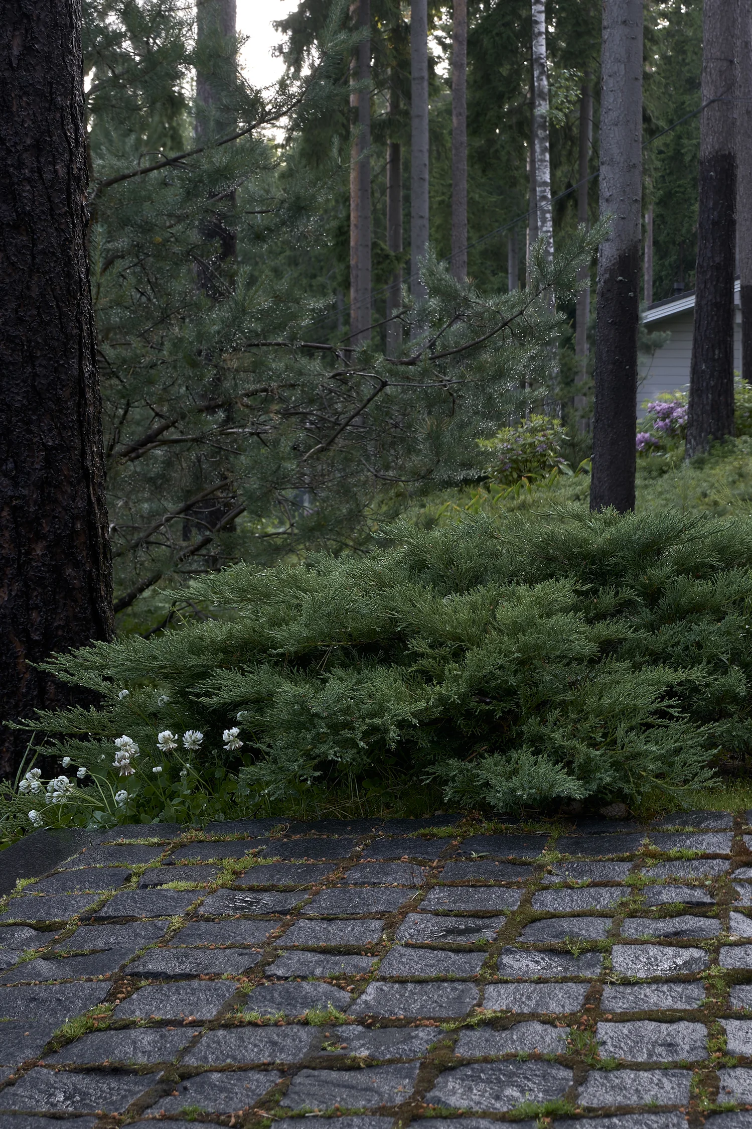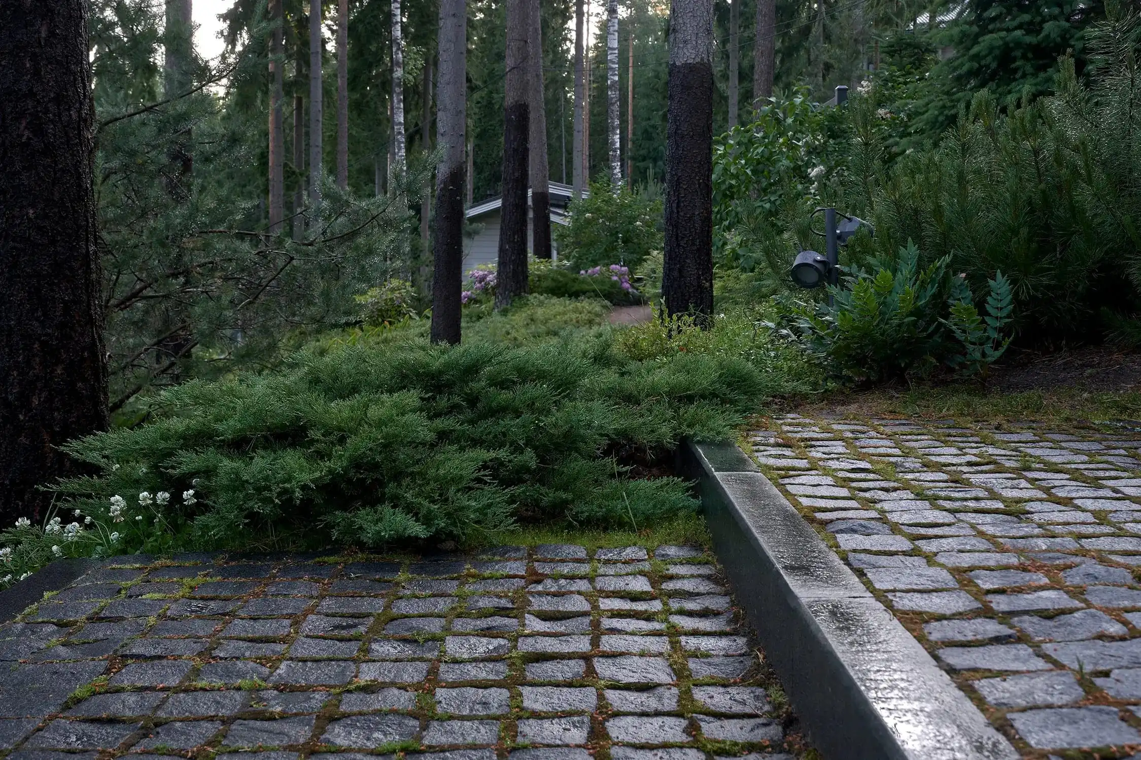 Главный — широкий каменный спуск, который выглядит как древняя кельтская тропа и ведёт к гаражу.
