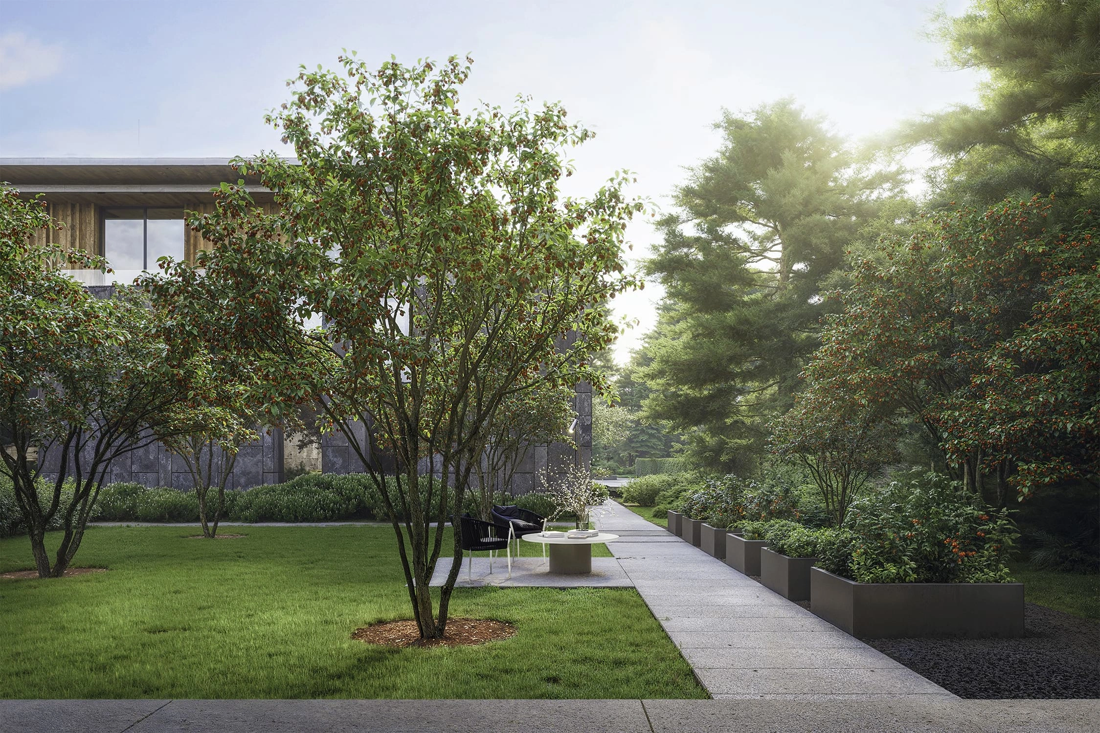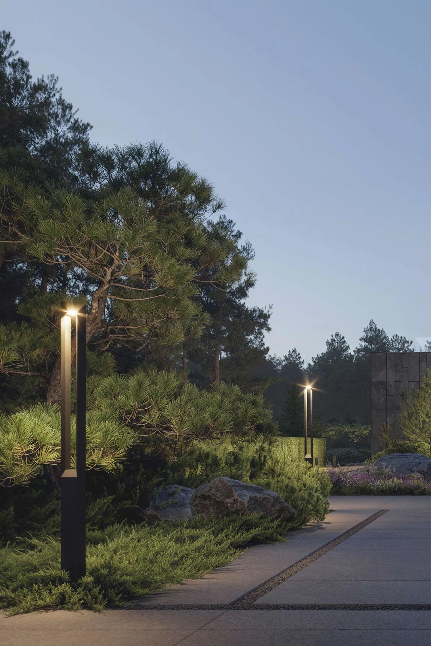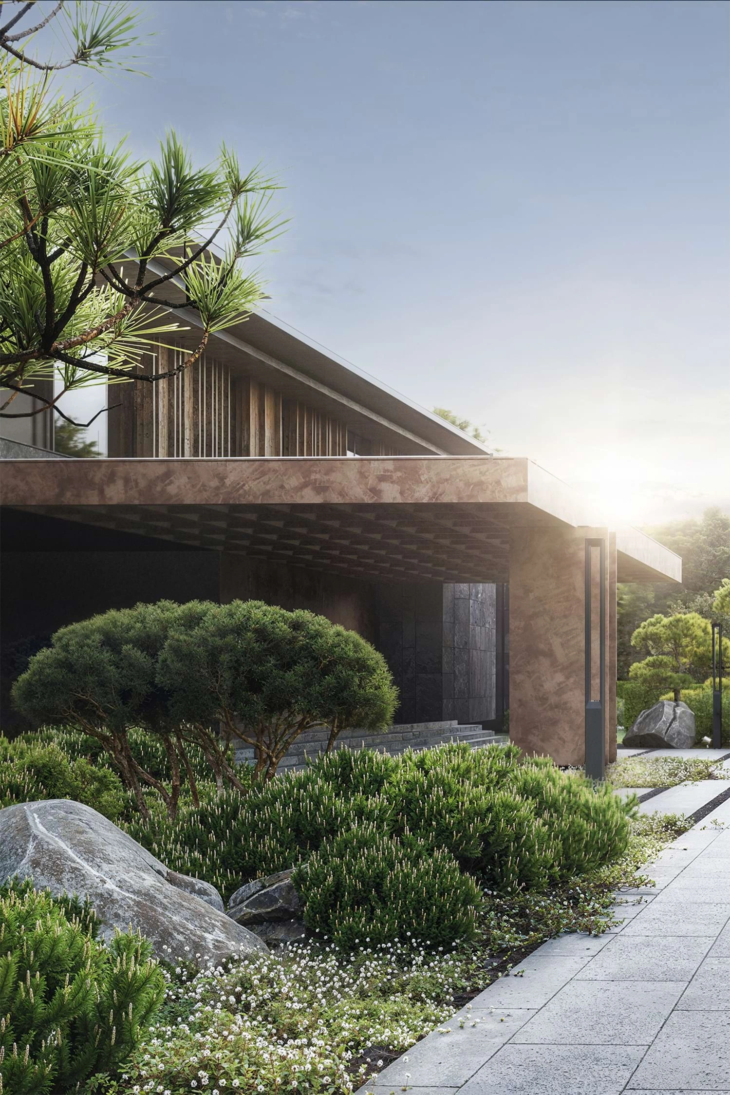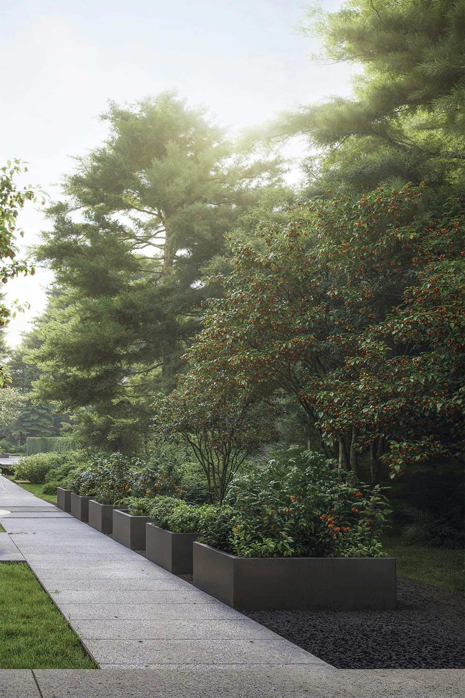 Дом, внушительный по масштабу, органично вписан в природу. Сад не противостоит зданию, а обнимает его, смягчает, превращая в часть живого пейзажа. Маршрут по саду охватывает разные зоны благоустройства с собственным характером, светом и настроением. От парадного входа в строгом и лаконичном стиле до солнечного плодового сада и нуарного лиственного леса — на протяжении прогулки человек замедляется, останавливается, изучает, чувствует. Мы сознательно ломаем линейность участка, меняя покрытия, растительность, освещение и материалы, чтобы путь не казался бесконечным коридором, а раскрывался как череда неожиданных пейзажей.