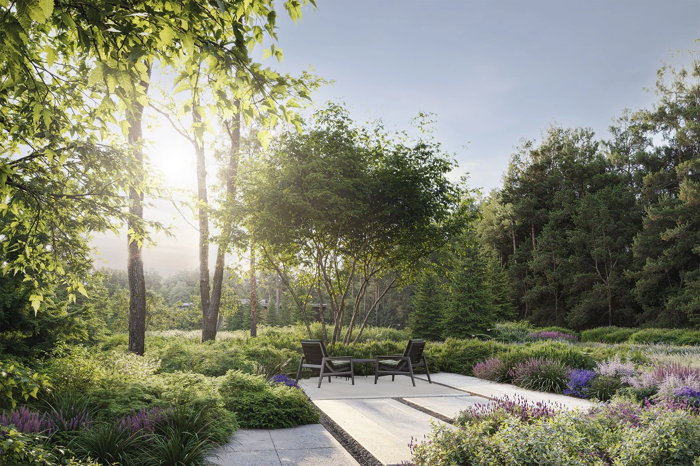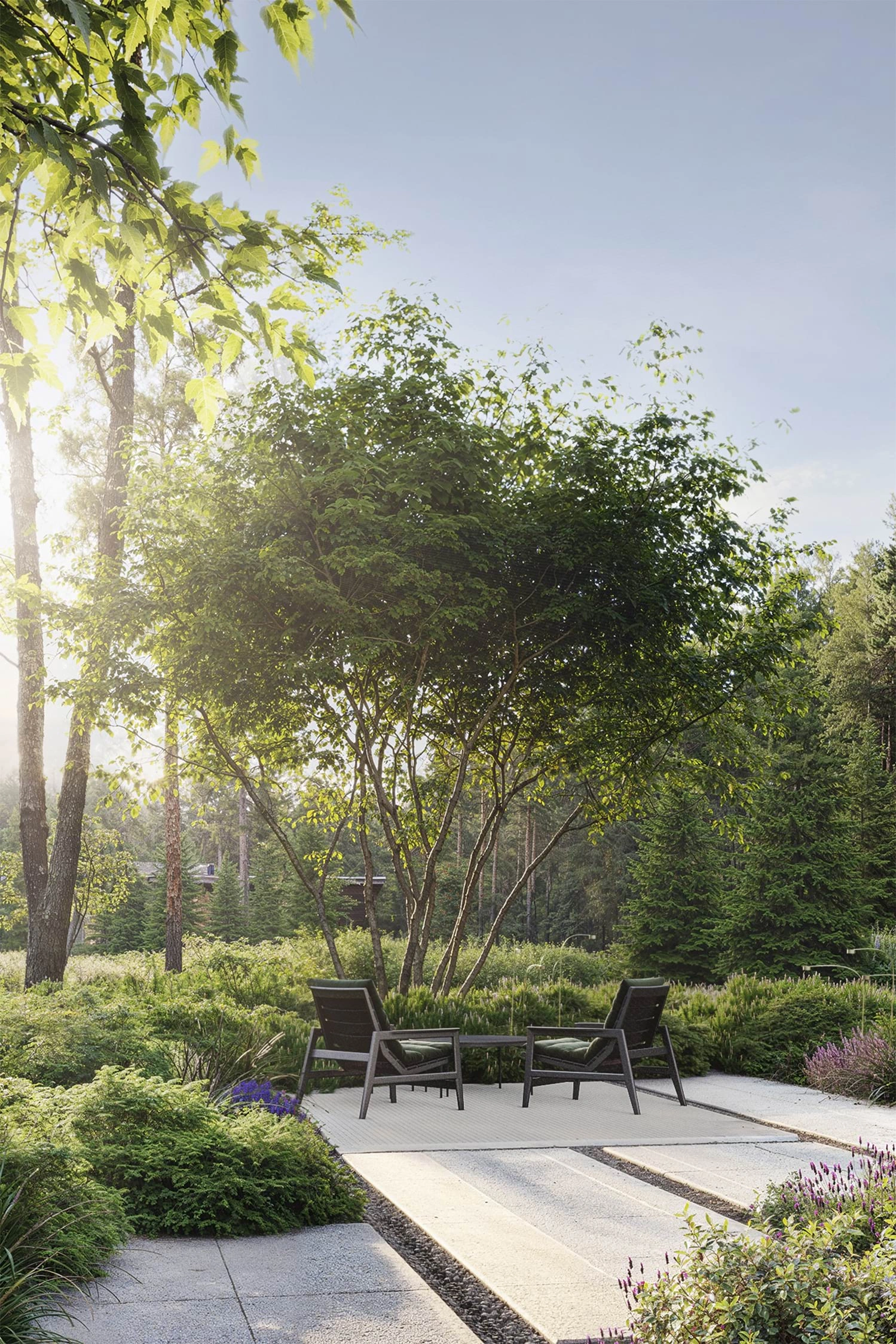 Скандинавский сад, отсылающий к профессии его владельца — топ-менеджеру в главной железнодорожной компании России. В основе концепции — метафора движения, которая сопутствует путешествиям на поезде и проходит через весь проект, превращая сад в пространство с историей, символами и смыслами.